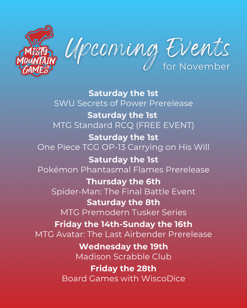 Check out what special events we have going on this month! Follow us on social media to keep up to date on what's happening.