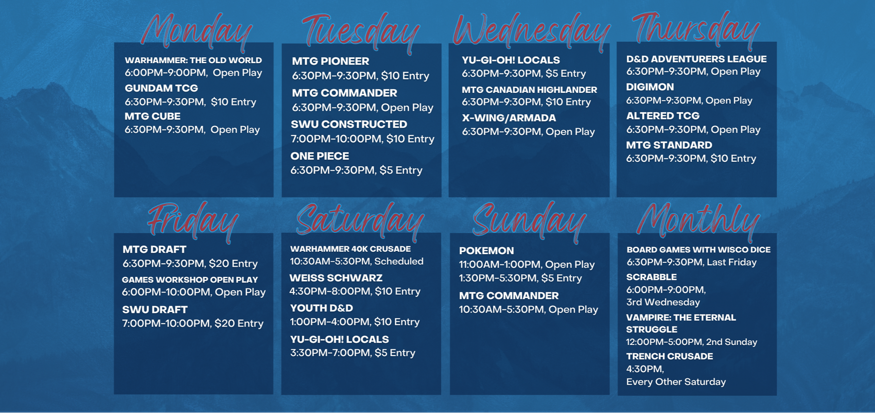Check out what special events we have going on this month! Follow us on social media to keep up to date on what's happening.