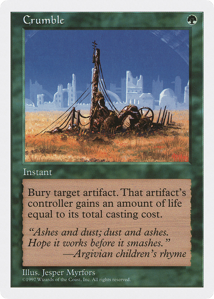 Destroy target artifact. It can't be regenerated. That artifact's controller gains life equal to its mana value.