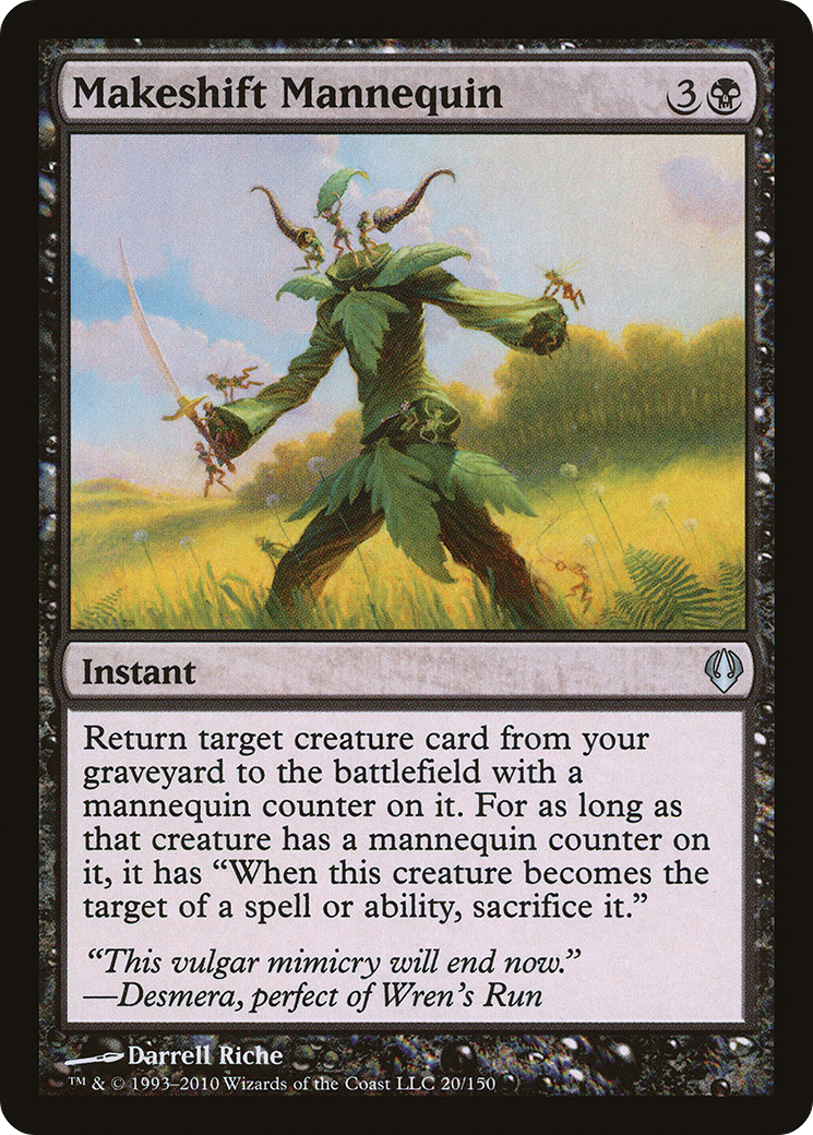 Return target creature card from your graveyard to the battlefield with a mannequin counter on it. For as long as that creature has a mannequin counter on it, it has "When this creature becomes the target of a spell or ability, sacrifice it."