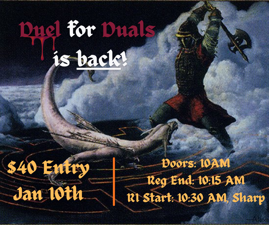 Hello Highlanders! We at Misty are running another DUEL FOR DUALS, and we are guaranteeinga Volcanic Island to 1st, 🌋🏝️ with additional milestones! Decklists required, email your Moxfield link here with your Melee username. Please read about proxies and coverage in the signup!