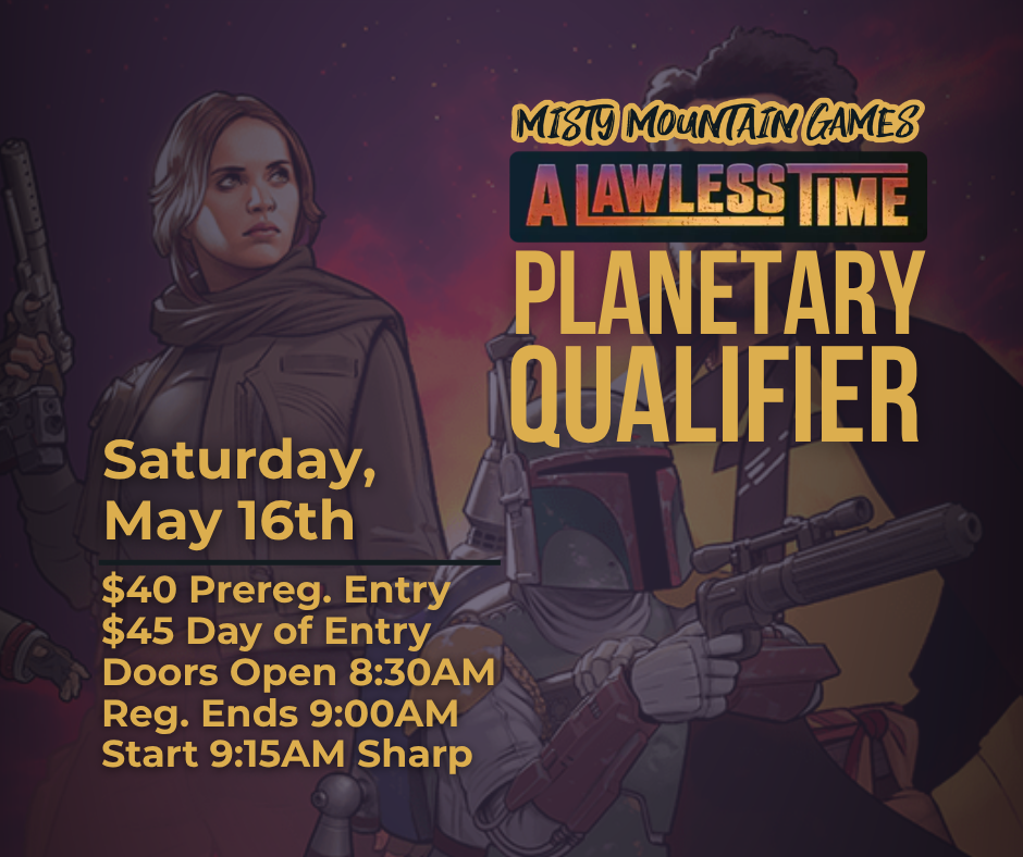 In addition to prizing provided by FFG, each person in the Top 8 will receive a BOX of A Lawless Time Carbonite Boosters! Additional prizing based on attendance.