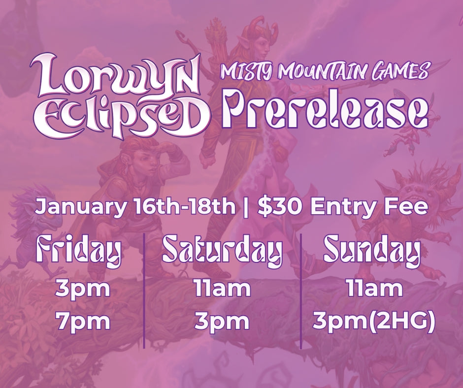 Deep in the Gilt-Leaf Woods, on a twisting path that led to you to MMG, you can take place in testing your mettle be that elves, elementals, faeries and other nostalgic callbacks in our Prerelease Events! If you 3-0, you will get to sign a piece of MMG history! 2HG is for BOTH players.