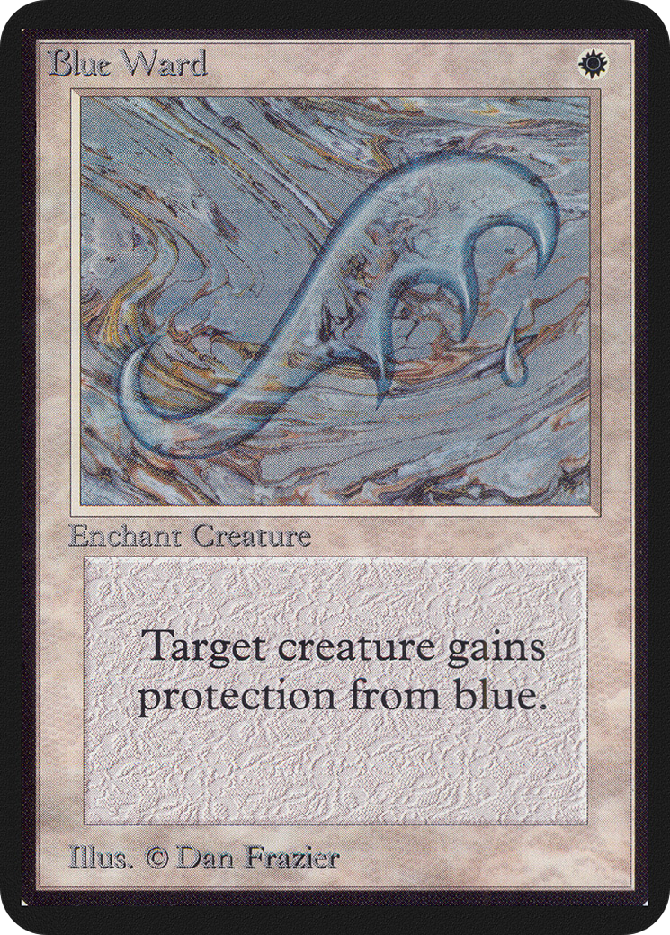 Enchanted creature has protection from blue. This effect doesn't remove Blue Ward.