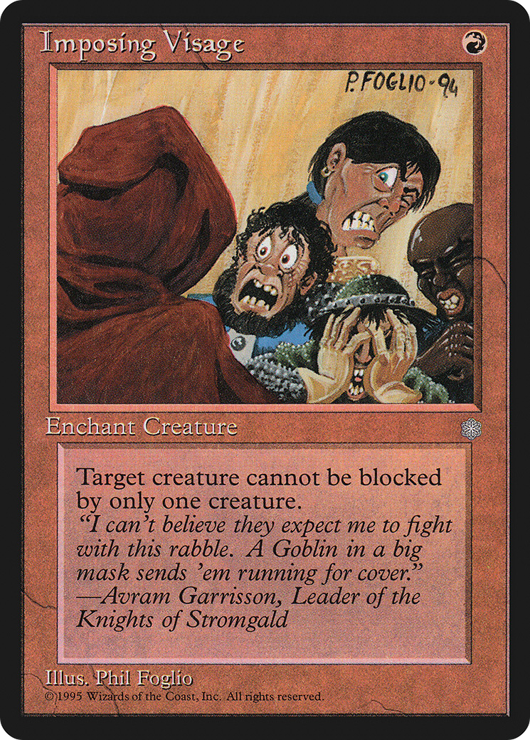 "I can't believe they expect me to fight with this rabble. A Goblin in a big mask sends 'em running for cover." —Avram Garrisson, Leader of the Knights of Stromgald