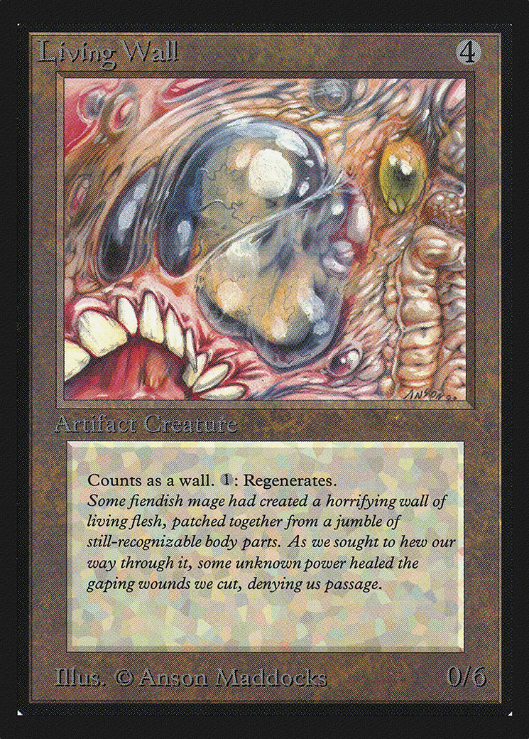 Some fiendish mage had created a horrifying wall of living flesh, patched together from a jumble of still-recognizable body parts. As we sought to hew our way through it, some unknown power healed the gaping wounds we cut, denying us passage.