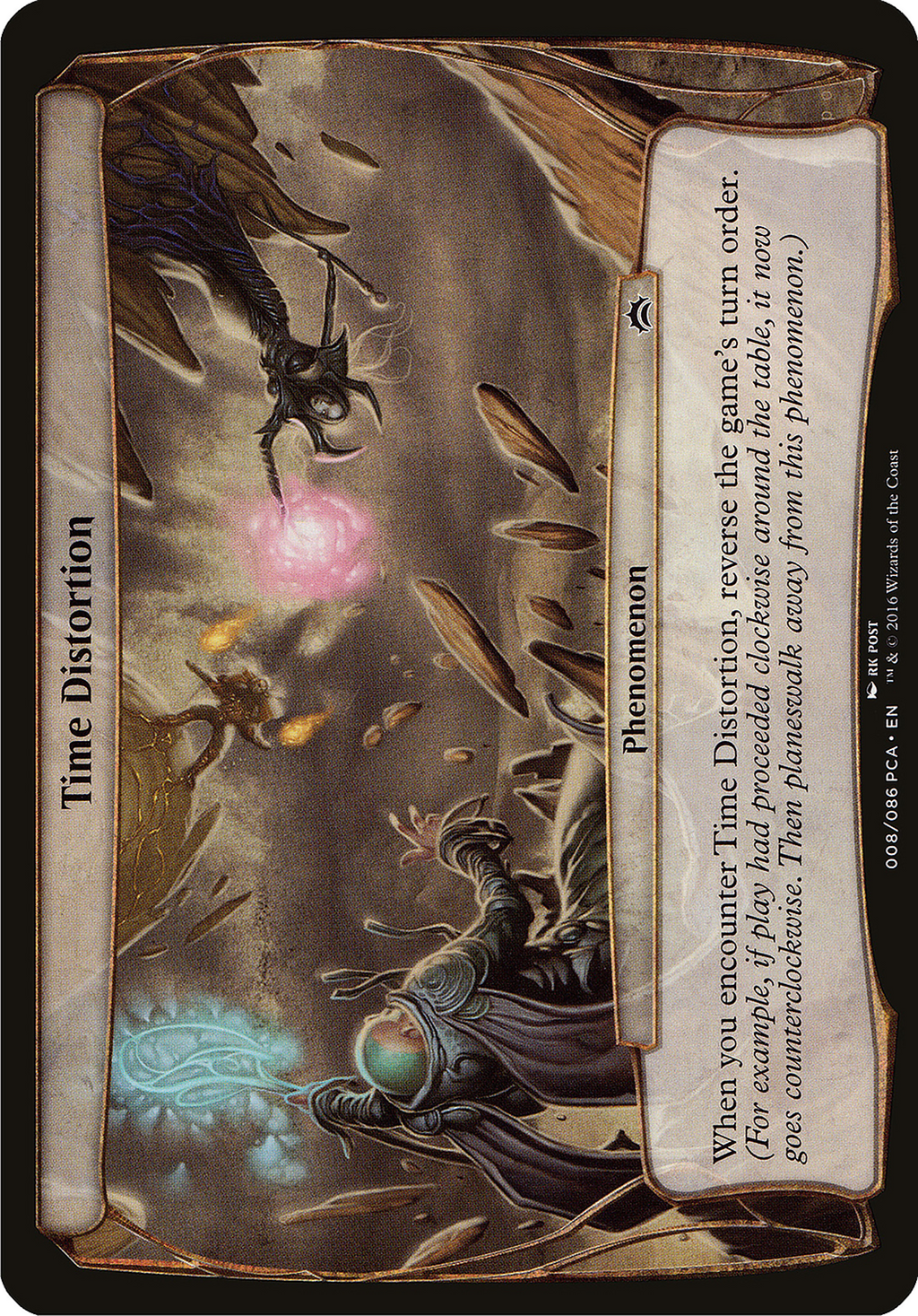 When you encounter Time Distortion, reverse the game's turn order. (For example, if play had proceeded clockwise around the table, it now goes counterclockwise. Then planeswalk away from this phenomenon.)