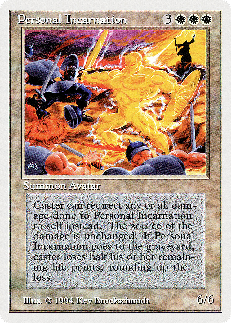 {0}: The next 1 damage that would be dealt to Personal Incarnation this turn is dealt to its owner instead. Only Personal Incarnation's owner may activate this ability.